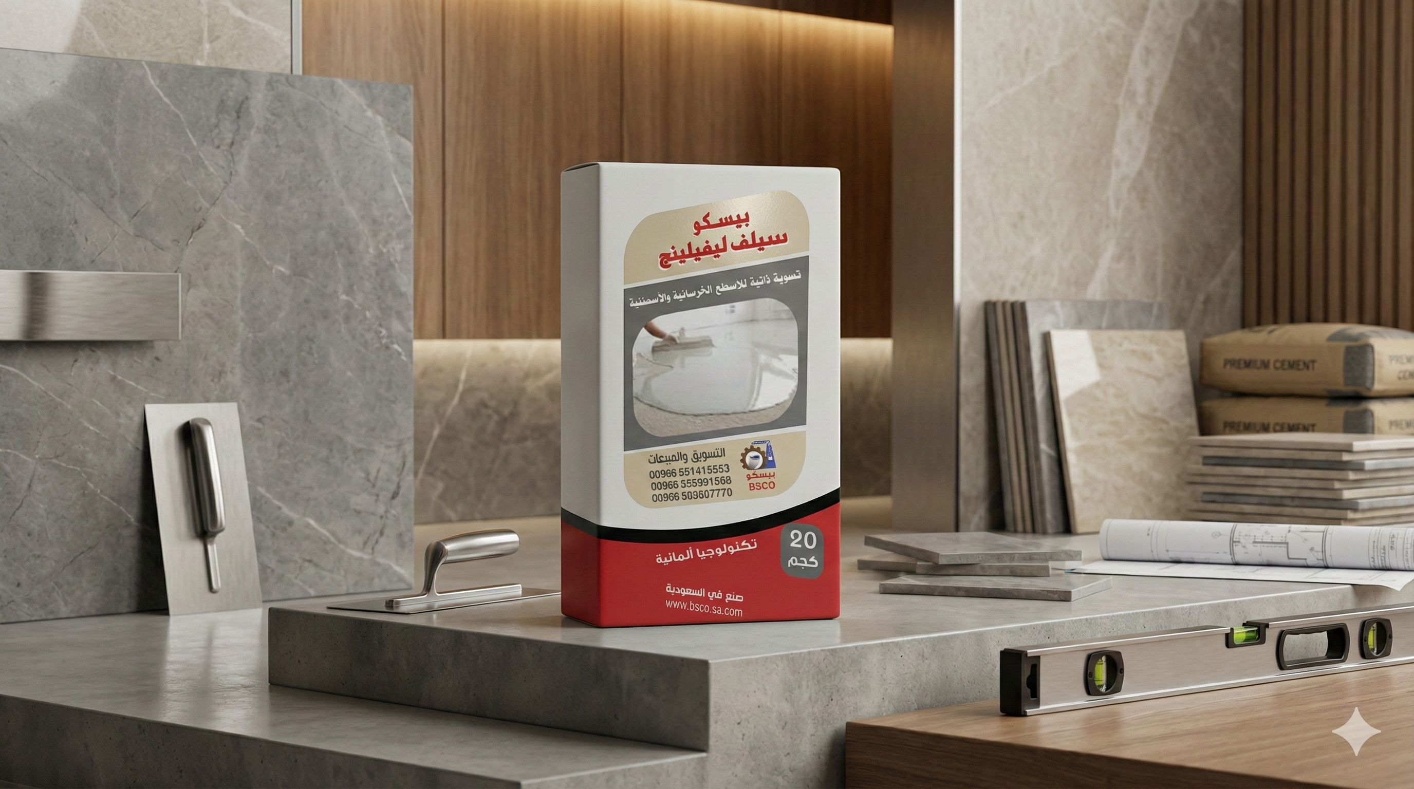 منتج ذاتي التسوية لتسوية الأرضيات الخرسانية قبل تطبيق البلاط.